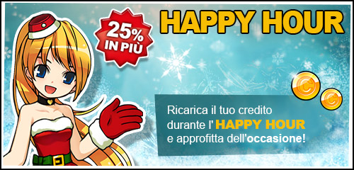 Ci siamo: il 25.12.2025 00:00 CET vi aspetta un nuovo Happy Hour! Per 24 ore (25.12 23:59 CET) riceverete un bonus del 25% sull'acquisto di El-Coins. Cosa state aspettando? Sfruttate questa occasione per equipaggiarvi alla grande e partire alla volta di nuove avvincenti avventure su Elios!